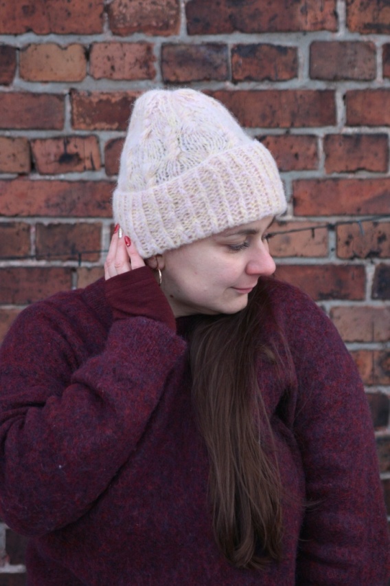 100% alpaka czapka handmade warkocz puder + masełko melanż