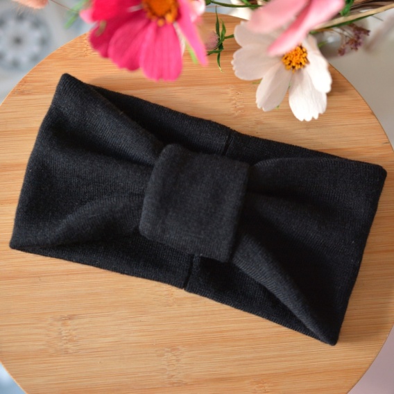 • 100% wełna merino opaska z kokardką upcykling średnia grubość CZARNA