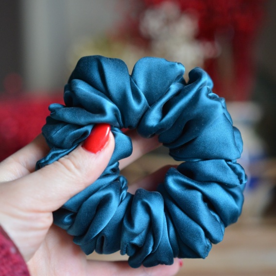 Jedwab MAXI gumka upcykling scrunchie NOCNY TURKUS