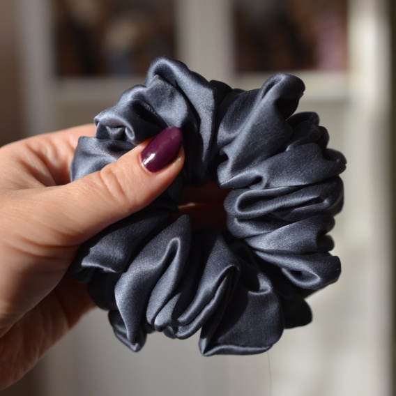 Jedwab maxi gumka upcykling scrunchie stalowa
