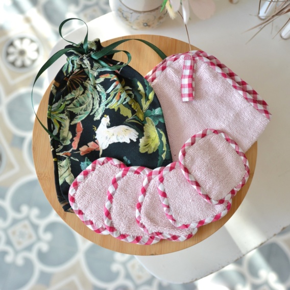 Komplet zero waste 5 wacików + ręcznik + woreczek papugi