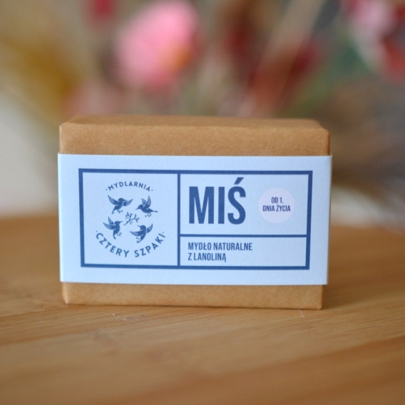 Miś to jedno z najbardziej uniwersalnych mydeł w naszej ofercie. Minimalistyczny, klasyczny skład sprawia, że z powodzeniem może go używać cała rodzina - zarówno dorośli, jak i dzieci. Polecamy go jednak najmłodszym nie tylko ze względu na uroczą nazwę - wyważona kompozycja dobroczynnych olejów w połączeniu z lanoliną nie tylko wspaniale i łagodnie oczyszcza skórę, ale też odżywia ją i chroni przed niepożądanym działaniem czynników zewnętrznych. Wraz z dbającym o wrażliwą skórę już od 1. dnia życia olejkiem Kaczuszka, Miś stał się ulubieńcem młodych mam i produktem pielęgnacyjnym dla dzieci chętnie polecanym przez specjalistów w szkołach rodzenia. To, według nas, jedna z jego najlepszych rekomendacji. Ta kostka to synonim delikatności, dlatego chętnie sięgają po nią osoby borykające się ze skórą problematyczną, skłonną do alergii lub nadmiernego przesuszania. Ze względu na swoje działanie podtrzymujące nawilżenie skóry, Miś u wielu osób dobrze sprawdza się również jako kosmetyk do mycia twarzy. Z powodzeniem może być stosowany także w wieloetapowym demakijażu. Lanolina od niepamiętnych czasów znajduje zastosowanie w medycynie jako surowiec używany w maściach i kremach - głównie ze względu na swoje właściwości oczyszczające, wygładzające i natłuszczające. Tworzy na powierzchni naskórka delikatny film, który zmniejsza odparowywanie wody. Misia używa się z czystą (dosłownie) przyjemnością. To za sprawą delikatnej, ale całkiem gęstej, przyjemnej piany. Pachnie naturalnie i lekko, dzięki czemu przypadnie do gustu zwolennikom neutralnych, niedrażniących aromatów. Waga: 110 g  Wymiary kostki: Ok. 8x5x3 cm