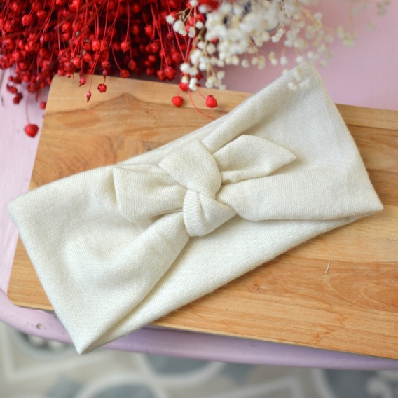Opaska śmietanka MERINO z kokardką upcykling cienka