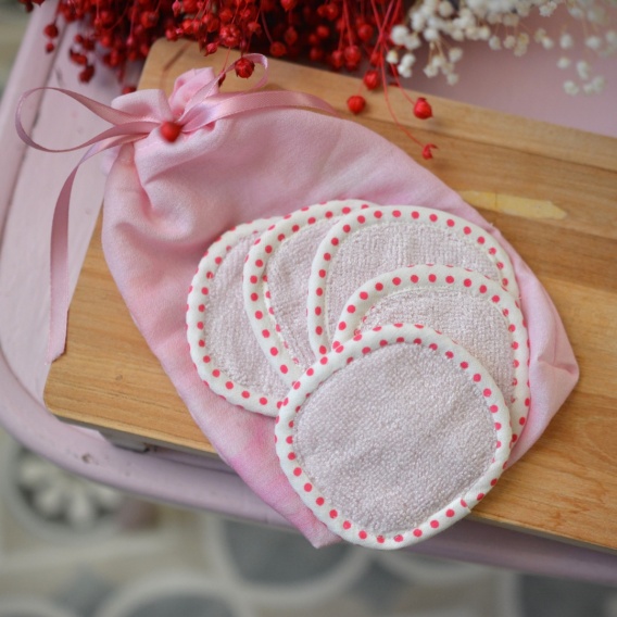 5 sztuk podwójnych wacików wielorazowych + woreczek do ich przechowywania