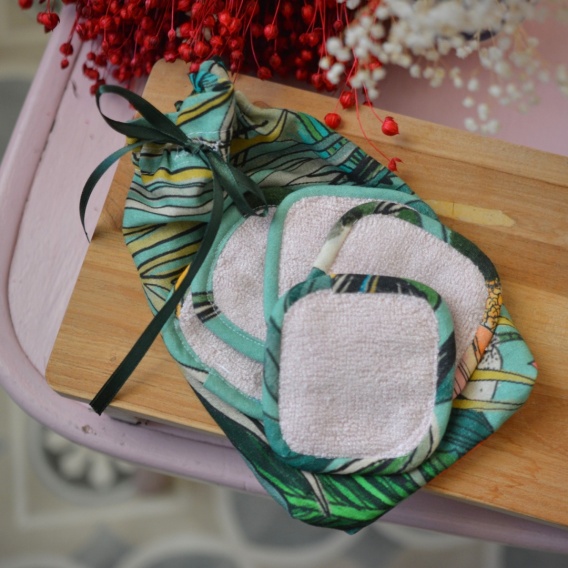 5 sztuk podwójnych wacików wielorazowych + woreczek do ich przechowywania