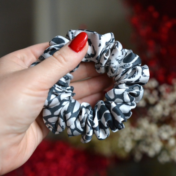 • Jedwab MIDI gumka upcykling scrunchie BIAŁO GRAFITOWA