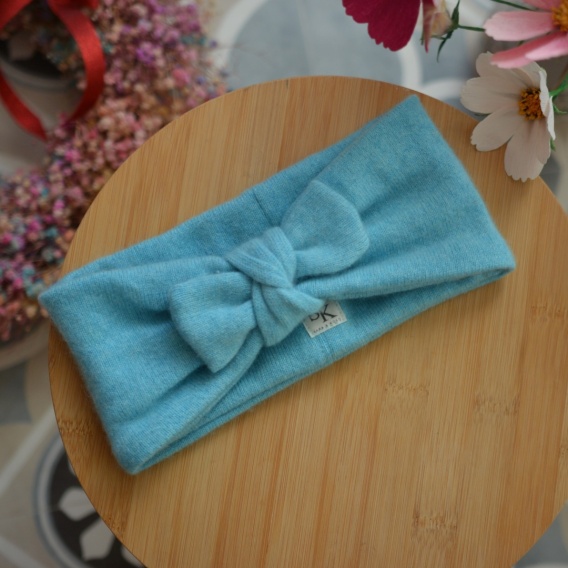 Kaszmir błękitna opaska PREMIUM upcykling średnia grubość puchata z kokardką