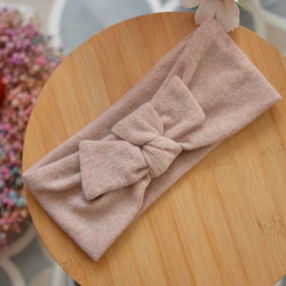 Kaszmir+wełna opaska z kokardką jasny brudny róż upcykling cienka