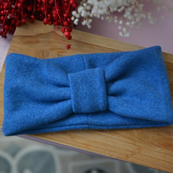 Niebieka azure wełna jagnięca opaska upcykling GRUBA I BARDZO CIEPŁA