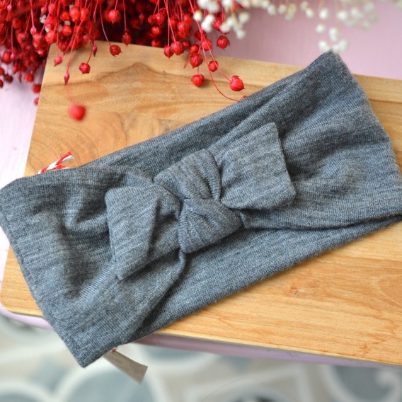 Opaska grafit z kokardką MERINO upcykling cienka/średnia