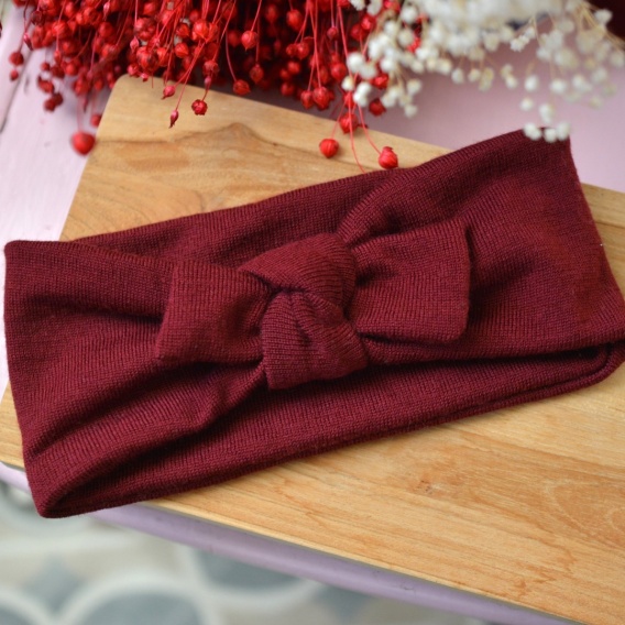 • Opaska wiśnia z kokardką MERINO upcykling średnia grubość