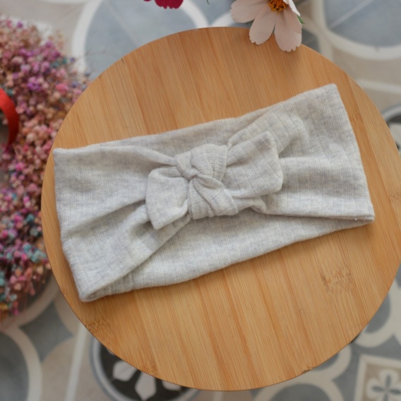 Szara jedwab/wełna/wiskoza opaska upcykling cieniutka - na większą głowę